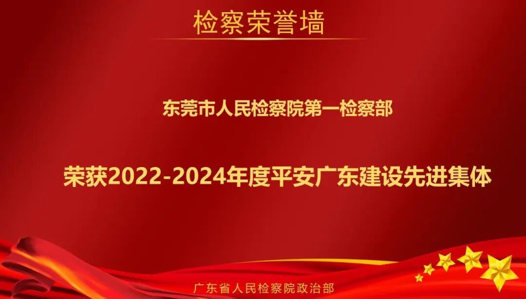 东莞市人民检察院第一检察部始终坚持以习近平新时代中国特色社会主义思想为指导,将惩治犯罪、维护社会稳定作为平安建设的重要任务,2022年至2024年办理各类刑事案件约1300件,严惩涉黑恶、故意伤害、强奸、抢劫等严重影响群众安全感的犯罪。坚持和发展新时代“枫桥经验”,注重源头化解矛盾纠纷,严防极端案件发生。积极探索犯罪治理路径,大力推进醉驾、盗窃等突出犯罪专项治理,推动市委依法治市办将盗窃犯罪治理纳入“东莞市2025年法治建设十件实事”,依托市委平安办印发《东莞市盗窃犯罪专项治理工作方案》,统筹开展全市系统治理,实现2024年盗窃警情同比明显下降,先后荣获东莞市“平安建设年度优秀等次成员单位”“社会治安综合治理优秀集体”等。
