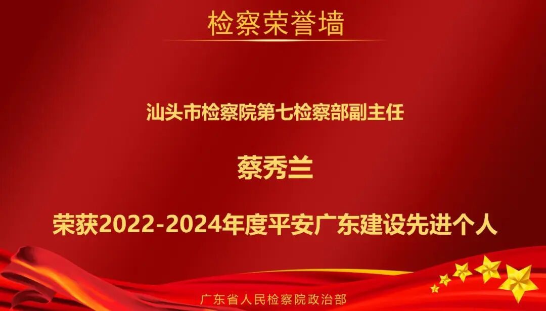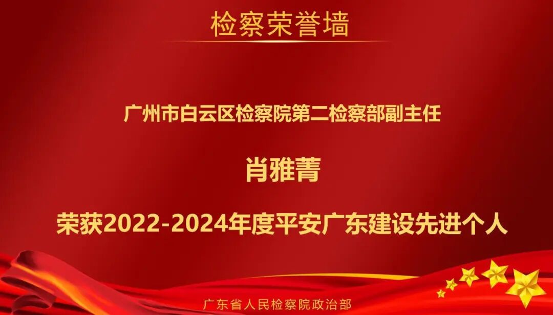 9月16日,平安广东建设工作会议在广州召开,会上宣读了表彰2022-2024年度平安广东建设先进集体和先进个人的决定。广东检察机关2个集体,8名个人获表彰。