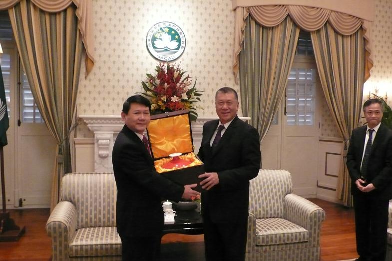 郑红检察长向澳门特首何厚铧先生赠送礼品