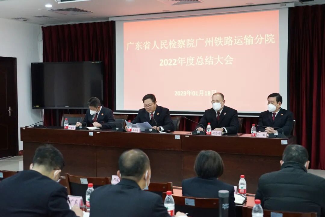1月18日,广东省人民检察院广州铁路运输分院召开2022年度总结大会,全面回顾过去一年的各项检察工作,高度肯定在落实各项任务中涌现出来的先进集体和个人。分院分党组书记、检察长来向东出席会议并讲话。