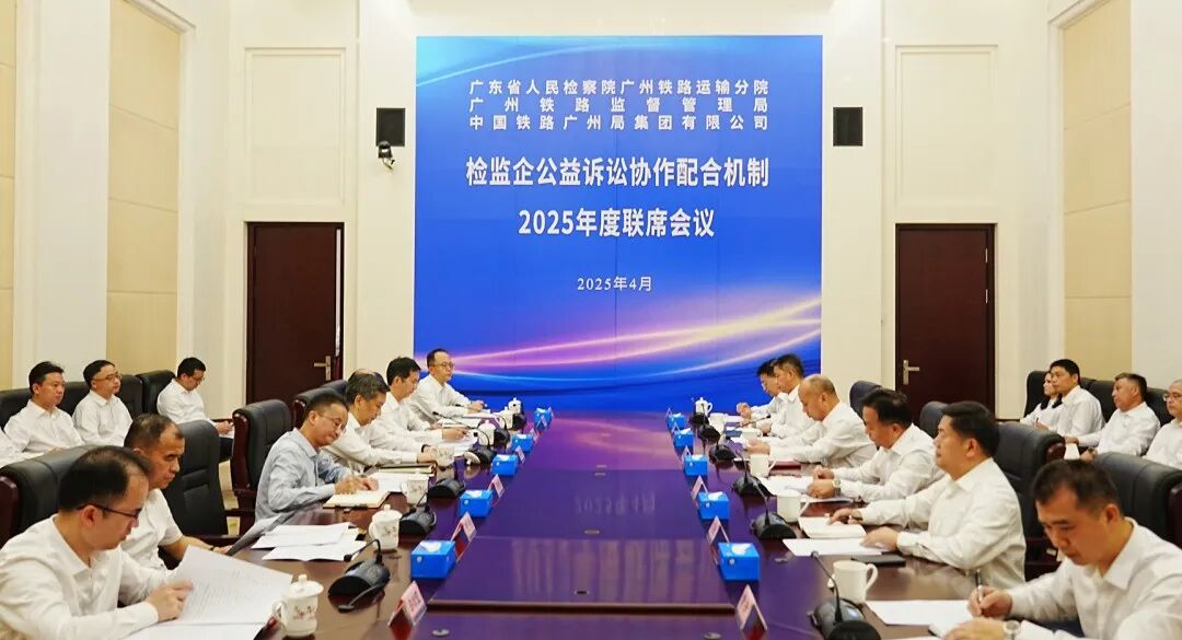 4月10日,广东省检察院广州铁路运输分院与广州铁路监督管理局、中国铁路广州局集团有限公司召开“检监企”公益诉讼协作配合机制2025年度联席会议。分院分党组书记、检察长杨宇,广州铁路监督管理局分党组书记、局长马良民,中国铁路广州局集团有限公司党委书记、董事长蒋辉出席会议。  会上,分院分党组成员、副检察长邓国富通报了广铁检察机关2024年涉铁路安全公益诉讼检察工作情况。“检监企”三方领导就如何进一步凝聚三方协作合力,推动涉铁路安全公益诉讼检察工作进行了深入交流。自2021年“检监企”三方联合签定《关于建立公益诉讼协作配合机制共保铁路安全的意见》以来,三方参与、共治共享的工作格局不断巩固深化,检察机关法律监督职能、监管机构铁路安全监督管理职能、铁路企业的安全生产主体责任得以充分有效发挥。2024年,“检监企”三方共召开联合例会3次,开展联合行动、现场检查13次,消除安全隐患109处;联合组织开展了“检铁共治共保铁路外部环境安全公益诉讼专项行动”,重点针对公铁并行、铁路沿线轻飘物、公跨铁桥梁、涉铁违法施工等七类铁路外部环境安全隐患开展排查,共立案涉铁公益诉讼案件70件,及时查处整治了一批危害铁路线路安全、铁路运输安全的违法行为和安全隐患,其中“督促整治郴州市京广铁路公跨铁桥梁(马田圩桥)重大安全隐患行政公益诉讼案”入选最高检和国铁集团联合发布的铁路外部环境安全公益诉讼十大典型案例。蒋辉董事长高度肯定和诚挚感谢检察机关、铁路监管部门一直以来为服务平安铁路建设所做的工作。他指出,“检监企”三方公益诉讼协作配合机制建立以来,三方各自发挥优势,在隐患排查、信息共享、线索移交、联合整治等方面,逐步做到思想上同心、组织上同频、落实上同步、目标上同向,铁路安全管理水平有效提升,铁路沿线安全环境整治的成果丰硕。目前,随着铁路现代化建设的推进,铁路安全管理面对的外部环境因素威胁日益凸显,管内铁路沿线管理任务依然艰巨,下一步,集团公司将继续以“检监企”三方公益诉讼协作配合机制为基础,深化协作配合,强化隐患排查治理,提升安全管理水平,全力推动铁路沿线安全环境治理,不断巩固扩展铁路安全环境治理成果,坚决确保铁路安全持续稳定,共同为保障铁路运输安全,服务经济社会发展做出更大贡献。 马良民局长表示,近年来广州铁路监督管理局充分利用“检监企”三方公益诉讼协作配合机制坚实基础,密切联系检察机关和铁路运输企业,积极开展铁路沿线外部环境安全治理工作,深入广东、湖南、海南一线监督检查和行政执法,及时发现查处了一批危害铁路安全的违法行为,督促地方政府、铁路企业履行责任,共同维护保障了辖区铁路运输安全稳定,受到了上级机关和社会舆论好评。与此同时,必须清醒认识到辖区铁路沿线环境安全形势依然严峻复杂,在接下来的工作中,要继续以“检监企”三方公益诉讼协作机制为平台,进一步加强与检察机关、铁路企业协作配合实践,大力加强维护铁路安全工作,共同发挥好三方机制的统筹作用、牵引作用、推动作用,共同防范、化解铁路重大风险隐患,实现法制化、常态化,推动铁路安全持续稳定,更好地统筹服务地方社会经济发展和铁路安全高质量监管工作。杨宇检察长强调,铁路安全是总体国家安全的重要组成部分,广铁检察机关作为专门检察院,一直把维护铁路安全作为主责主业,强化责任担当,积极稳妥推进铁路外部环境安全公益诉讼检察工作,通过高质效办案系统整治突出安全隐患,推动铁路高质量发展、高水平安全。近几年的工作实践,充分证明检察公益诉讼工作在督促履行地方政府属地管理责任和监管部门监管责任,协调落实企业主体责任,实现协同监管和综合治理良性格局,有效整治铁路沿线安全隐患方面具有独特的制度优势。要在总结去年联合开展路外环境安全整治专项工作经验的基础上,不断发展、深化“检监企”协作配合机制,进一步发挥检察机关、铁路监管部门和铁路企业各自优势,聚焦危害铁路安全的难点痛点问题,常态化开展铁路安全公益诉讼工作,为服务保障铁路持续安全稳定作出新的贡献。 会上,分院还在广州铁路监督管理局、广铁集团公司聘请了15名监管、工程、安全等专业人员为特邀检察官助理,杨宇检察长为特邀检察官代表颁发了特邀检察官助理聘书。这些特邀检察官助理将参与涉铁公益诉讼案件的办理,为检察机关提供专业帮助,充分发挥行政监管机关和铁路运输企业的“外脑”智慧。