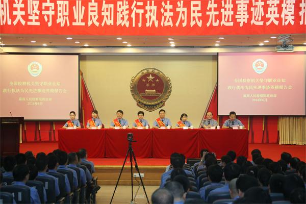 73日,全国检察机关坚守职业良知、践行执法为民先进事迹英模报告会暨广东省巡回宣讲会在广东省检察院举行,最高人民检察院及广东省委政法委相关领导参加了报告会,全省检察干警在现场或通过电视电话聆听了英模事迹。