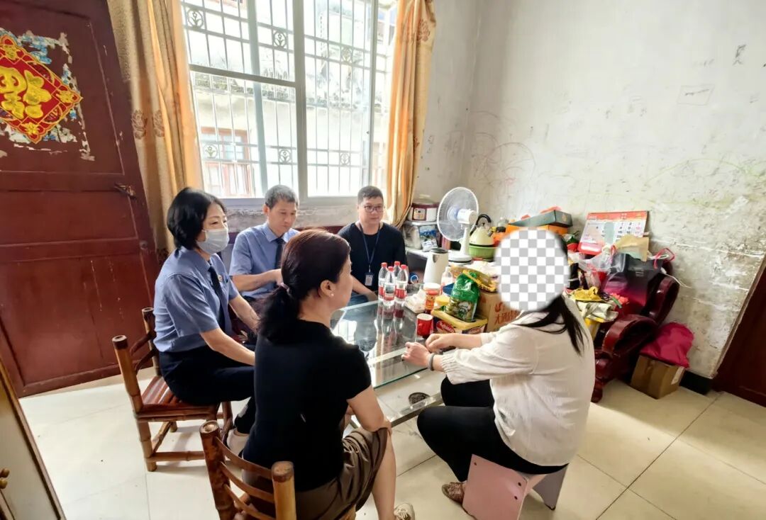 2025年6月,广东省连州市检察院干警联合社工、居委会工作人员为小李母亲开展心理疏导。