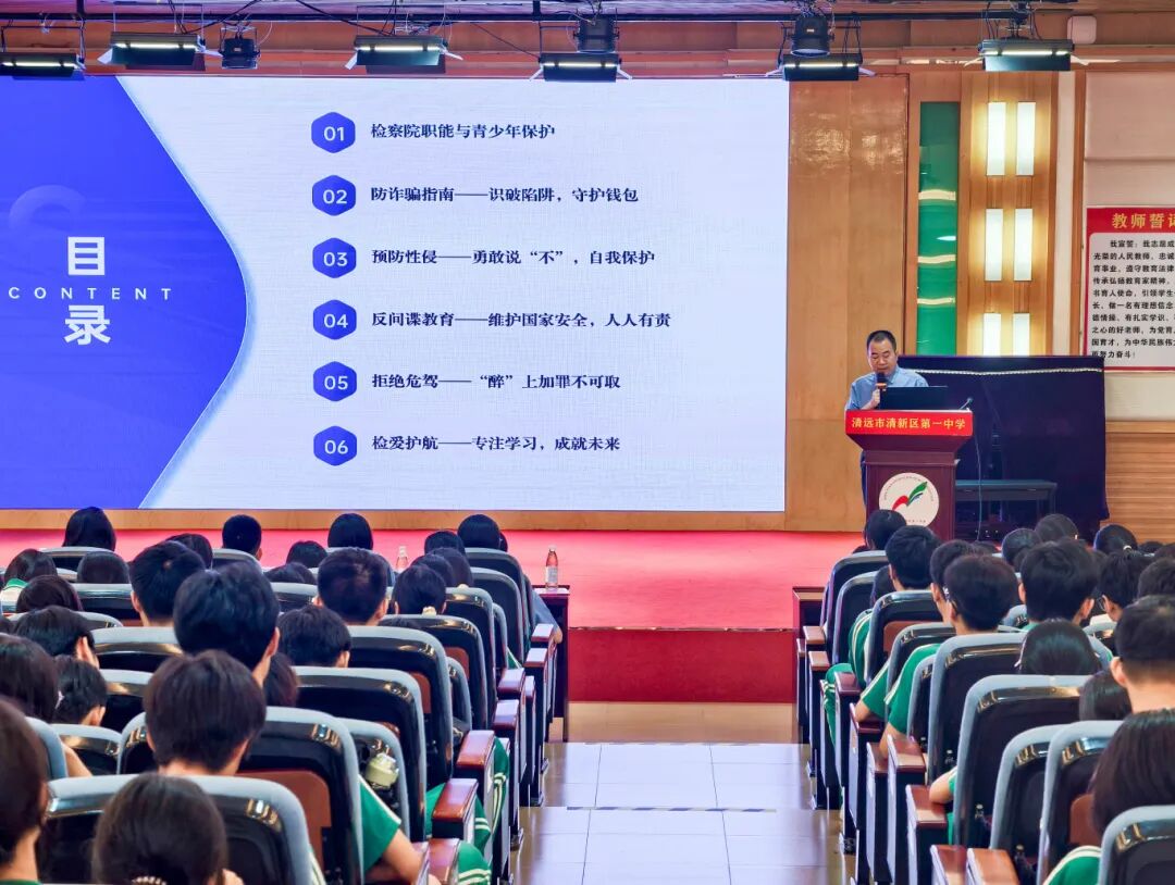 今年6月,清远市清新区检察院党组书记、代理检察长钟兆勇以法治副校长身份在清新区第一中学开展“与法同行”主题法治宣讲活动。