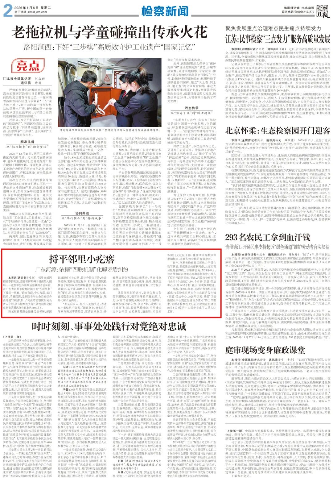 邻里亲戚因砌墙拳脚相加,想要和解却碍于情面陷入僵局……这些邻里纠纷背后隐藏的矛盾风险,在广东省河源市检察院建立的“四联机制”下被逐一化解。“群众直联、中心接联、部门联动、矛盾联调,是我院参与社会治安综合治理的‘四联机制’。”河源市检察院相关负责人介绍,该市检察机关依托该机制推动检察环节矛盾风险化解率达90%以上。