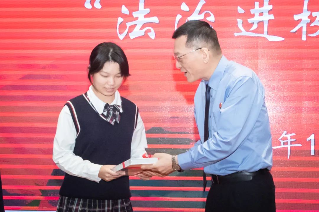 在第十个国家宪法日即将到来之际,12月1日下午,广东省人民检察院党组书记、检察长冯键从广东实验中学党委书记全汉炎手中接过聘书,正式受聘为广东实验中学法治副校长。